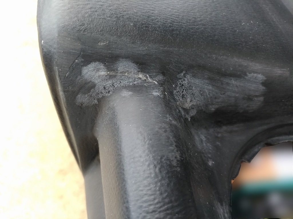 少し驚いたのが、充填剤がひび割れの奥まで入っておらず、表面だけ薄く入っていた事、充填剤へ巣穴が多く見られました。